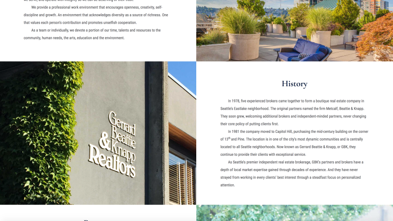 Gerrard Beattie & Knapp Realtors needed a site upgrade that reflected their service quality, independence, and commitment to their clients. Here are samples of the content I wrote.