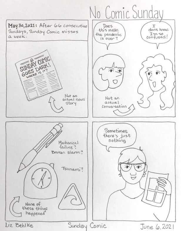 Fiction No Comic Sunday Date: June 6, 2021Author: Liz Behlke Email a link to a friend (Opens in new window) Email Share on Facebook (Opens in new window) Facebook Share on LinkedIn (Opens in new window) LinkedIn Like Loading...
